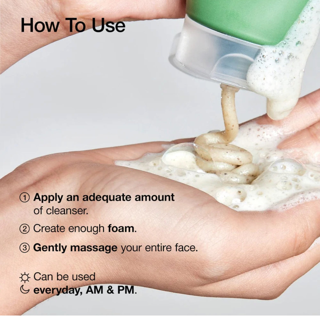 Dispense a small amount into your hands and lather with water. Massage gently over damp skin, then rinse thoroughly with lukewarm water. Use daily, morning and evening.